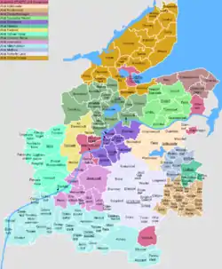 | Ortschaft | Angehörige Ortsteile, Güter & Gehöfte (ohne Ortschaft selbst) | Amtszugehörigkeit (Farben nach Karte) |