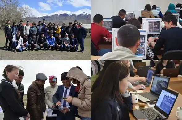 Students and teachers creating detailed maps of their villages as part of a project in 2016 in the Tien Shan mountains. read more on HOT blog