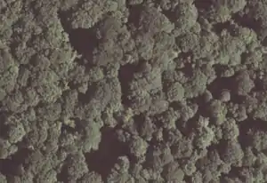 Aerial photograph of a forest. Useless for mapping paths and forest road located there