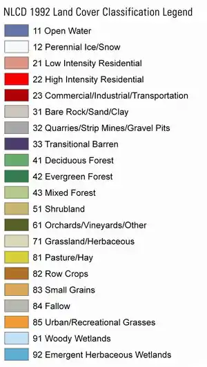 The column NLCD92 refers to the classification according to the National Land Cover Database, see more below.