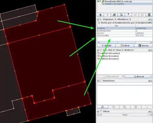 A continuación abriremos en JOSM un archivo OSM de Catastro procesado previamente con Cat2OSM2.