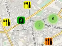 | Service, food | German | Shows cuisines of restaurants, cafes, etc. as little flags on the map. Additional information is available on click. Only D/A/CH region, at present. | Yes | ![]() | ||
