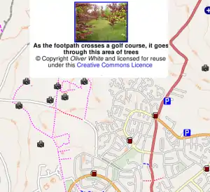Freemap, showing Bedford, with a Geograph photo open to show what the footpath looks like at ground level | |