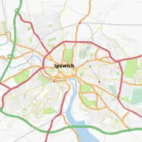 Ipswich town centre, typical example of a well-mapped town | |