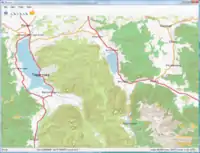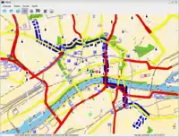 Gosmore running with OSM data on Windows CE and showing a route. | |