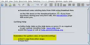The OpenStreetMap community would love to avoid any copyright violations. This should be a kind reminder why OpenStreetMap contributors may not freely copy things from copyrighted maps. The maps are free as in someone's buying you food for lunch, but not as free as in freedom. Also, this piece of opinion further describes the reasons why we should not simply copy things.