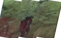 - 432 - 'near infrared' layer which shows vegetation in red, and bare soil in brown. Deep red hues indicate broad leaf and/or healthier vegetation while lighter reds signify grasslands or sparsely vegetated areas.