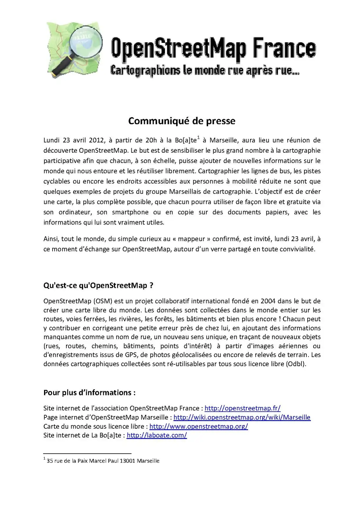 Le principal sujet qui a émergé des discussions était l'organisation d'une carto-partie : quels objectifs ? modalités pratiques ? déroulé de l'événement ? etc. Marin en a fait un résumé sur la liste de discussion local-marseille. Plusieurs personnes ont mentionné des guides/tutoriels sur l'organisation de carto-parties (voir liens ci-dessous), la première étape devrait être de faire une synthèse de ces documents.