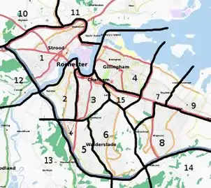 - Medway area including Rochester, Gillingham and Chatham (), UK