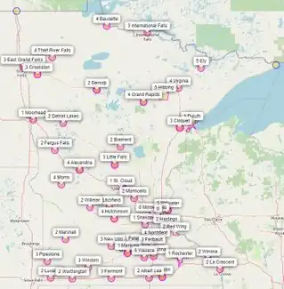 Applied to the entire boundary of cities, this key is used throughout the state of Minnesota to tag the entire boundaries of the cities considered by the classification project as possible regional centers. This allows a zoom out of the important cities in Minnesota and a zoom in (if needed) for seeing the specific boundaries of all those cities.