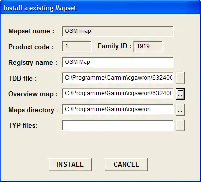 This creates 63240000.tdb, 63240000.img (overview) and further map files (one for each input file). Copy these into a directory of your choice.