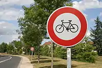 | primary, secondary, tertiary, residential, unclassified | bicycle=no | Voie explicitement taggée comme interdite au vélo | ![]() | ||