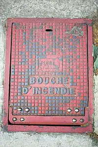 Bouches enterrées | ![]() ![]() Au sol, la plaque recouvrant le bouche d'incendie est assez petite. |