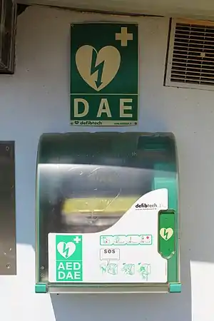 defibrillator:location=*, une description textuelle du lieu ou est situé l'appareil comme "au fond du couloir à droite". Les variantes dans d'autres langues peuvent être ajoutées avec defibrillator:location:<code langue>.indoor=yes/no, pour indiquer si l'appareil est à l'intérieur ou à l'extérieur d'un bâtiment.