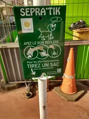 27 sacs a excréments canins ont été installé par la Mairie (source Mairie). 31 recensés par nos soins.