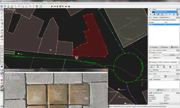 - georeferenzierte Bilder vom Stolperstein erstellen, die später in JOSM eindeutig zuzuordnen sind