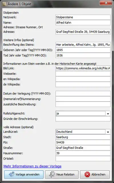 2. Möglichkeit: Stolperstein mit Stolperstein-Vorlage anlegen