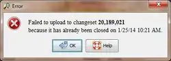 Probeer dan nogmaals of je met de upload knop weer verder kunt. Als je dan een melding krijgt dat deze changeset al klaar is probeer het dan nogmaals maar wijzig iets in de omschrijving door bv het woord "2e poging" toe te voegen.
