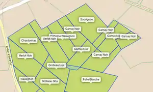 grape_varietyindique le cépage ... dont les valeurs sont évidemment en françaisvine_row_orientationdonne l'orientation des rangs de vignes