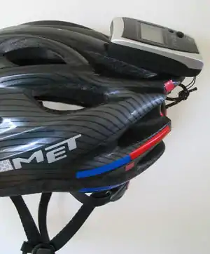 The NaviGPS is light enough to be barely noticable when mounted on top of a cycling helmet. For track logging with occasional waypoint recording, this is quite an effective setup as it gives the unit the best view of the sky. To record a waypoint, you simply reach up and press the joystick till the beep is heard.
