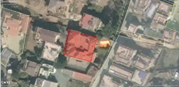 Below we see part of the building is covered by the shadow of another building. In this case you have to reference the other edges of the building and digitize accordingly.
