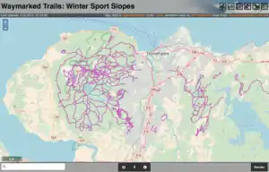 - OpenSnowMap overlay - Tilsvarende som kartlaget ovenfor; viser skiløyper som allerede er kartlagt i OSM.