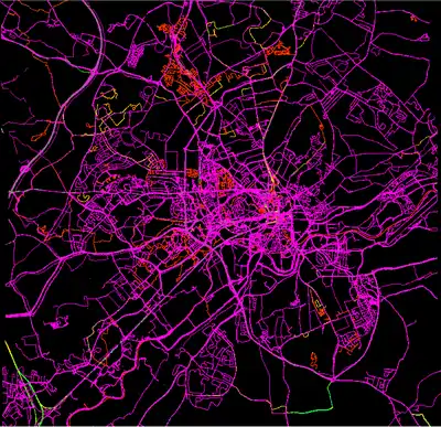 | 31 | Bulwell 52°59′56.76″ N, 1°12′12.96″ W | Complex mix of Victorian/Edwardian housing and industry, later infill, complete re-development and modern industrial estates. Also includes the former Cinderhill Colliery site. No Yahoo images, poor coverage. Some GPS traces for Bulwell centre, along Cinderhill road, and in the Bulwell Hall area. The Hempshill Vale estate has been completely mapped. | ||