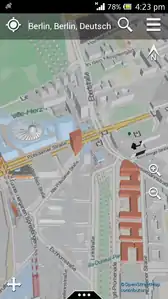 OSG-Maps displays the OpenStreetMap map on a virtual globe in 3D. Great for navigating in the city and yellow pages search. Buildings are displayed as 3D bodies including roof shapes. By using the integrated 3D acceleration on the device, a very smooth navigation in the map is achieved. The transitions between zoom level is seamless - there is no switching between different display modes.