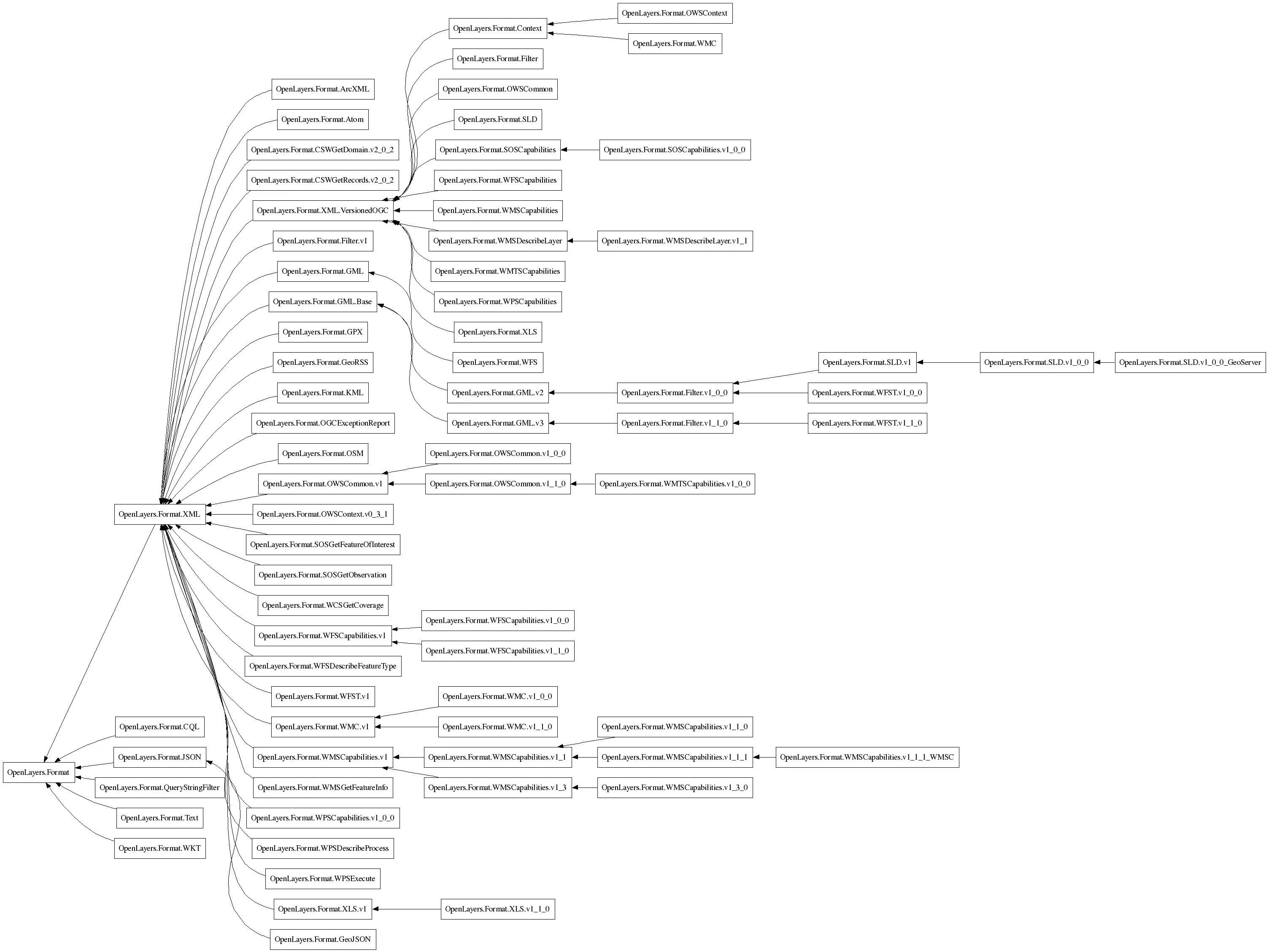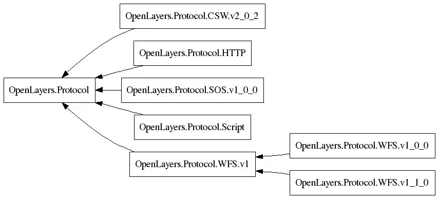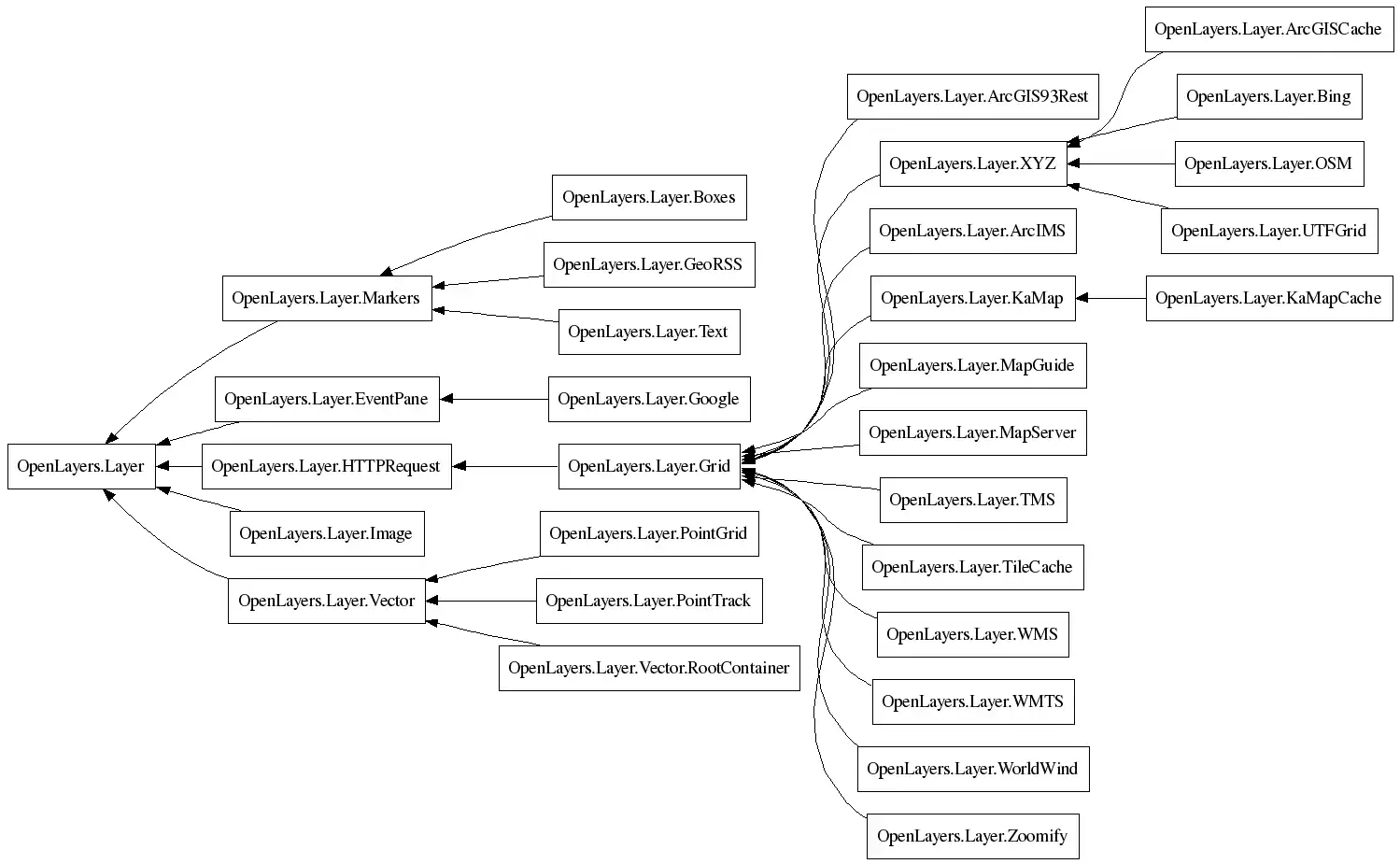 Class hierarchies of OpenLayers-Classes. Release 2.12. Only classes which are part of an inheritance are mentioned.