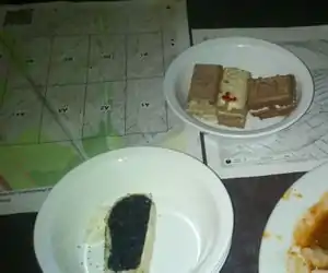 No cake, Makeshift O.S.M. cake from all you can eat materials available at the partyplace
