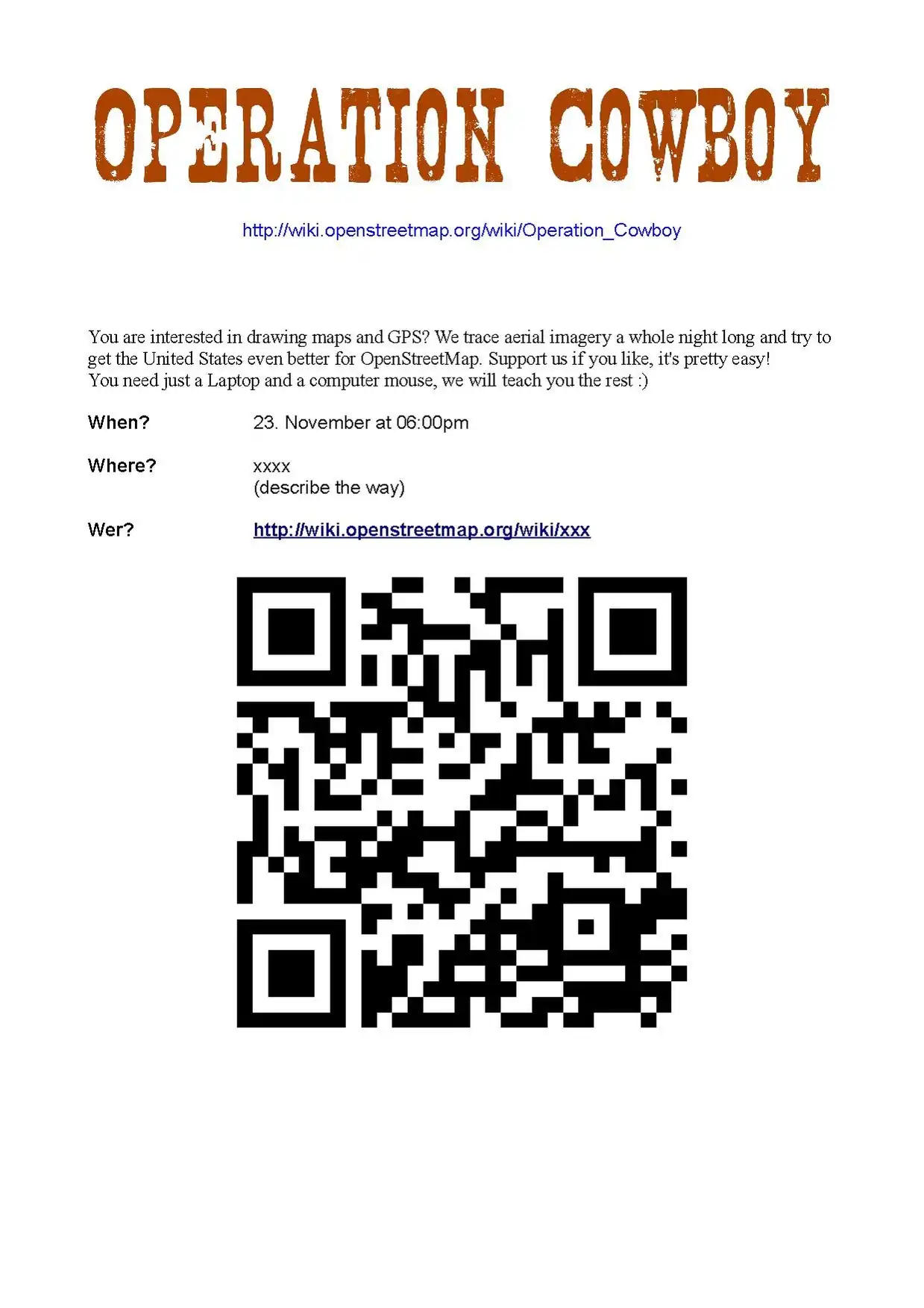 - contact your Local groups and paste Template:Operation cowboy for your party