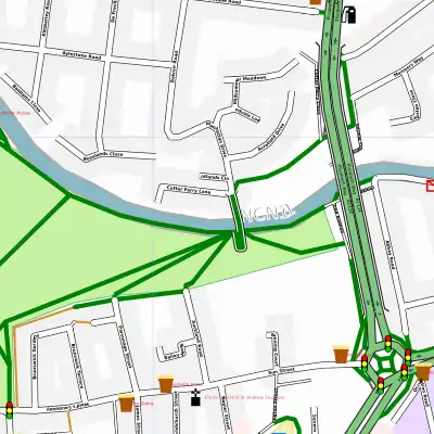 1) sometimes phantom line appears (see osmarender layer ) (rendered with modified tilesGen.pl where lines2curves.pl used as postprocessing on map-features.svg). Yep - Jochen is working on an update to osmarender4 to help fix this. Its due to the way that ways are finished off. It sometimes appears where two different ways join at a fairly sharp angle --Dotbaz 21:33, 1 March 2007 (UTC)