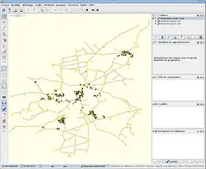 Parfois des segments de routes ne sont pas du tout sortis du script. Ce symptôme peut même toucher des portions entières de commune. Ce sont des erreurs au niveau du cadastre en lui-même. Il n'y a pas d'autre choix que de tout dessiner. Utilisez pour ça l'outil de digitalisation, il est situé dans la bande verticale à gauche de la fenêtre.
