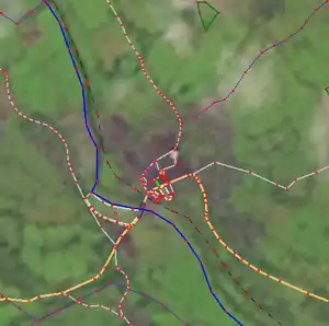 ![]() Landsat view showing unmapped patches of the town beforehand. |