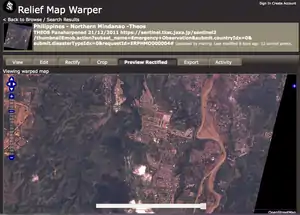 Sendong imagery from Theos. Many satellite providers allows the use of their imagery for free during disasters. This image shows rectified imagery provided by Thailand's satellite (Theos) after the flooding in Cagayan de Oro caused by Tropical Storm Sendong. We rectified this image and it is now available for tracing in OSM. Other Theos imagery is available in our list. | |