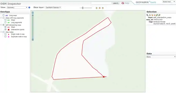 Easiest way to detect self-intersecting forestry polygons is Geofabrik's OSM Inspector.