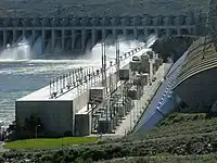 They are often located beside a dam but are completely different installation as well, composed of several components.