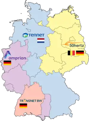 Die regionale Verteilung der Netzbetreiber ist zum größten Teil übereinstimmend mit den Regelzonen im deutschen Stromnetz. Eine Karte der Regelzonen gibt es in der Wikipedia.