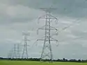 | 69 kV | 5 | Used for sub-transmission in the majority of the country. | Medium to tall poles, and H-frame towers. Lines may branch off to supply a large industrial customer or a distribution substation. Typical height and size of structures from 15–21 meters (49–69 ft) tall. | ![]() | |