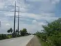 | 7.62/13.2 kV or 8/13.8 kV | 3 | Distribution | Predominant distribution voltage supplied by the majority of electric cooperatives. 8/13.8 kV is Meralco (in Northern Bulacan, southern Cavite, Batangas City and San Pascual) and most other private power utilities. | Medium-size poles, usually placed roadside. Multiple wires and circuits may not be obvious from imagery. Networks form large webs of lines with many branches ("laterals") that may carry one or two wires. Step-down transformers normally mounted on poles. | |