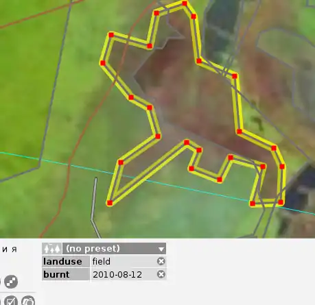 - When you've mapped everything, don't forget to save your work. Feel free to add a changeset comment "Outlined from fires.kosmosnimki.ru imagery".
