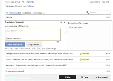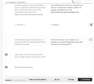 The Translate extension provides a translation user interface, semi-automatic translation, translation progress, and other features that significantly improve the process of translating pages compared to the current translation system.