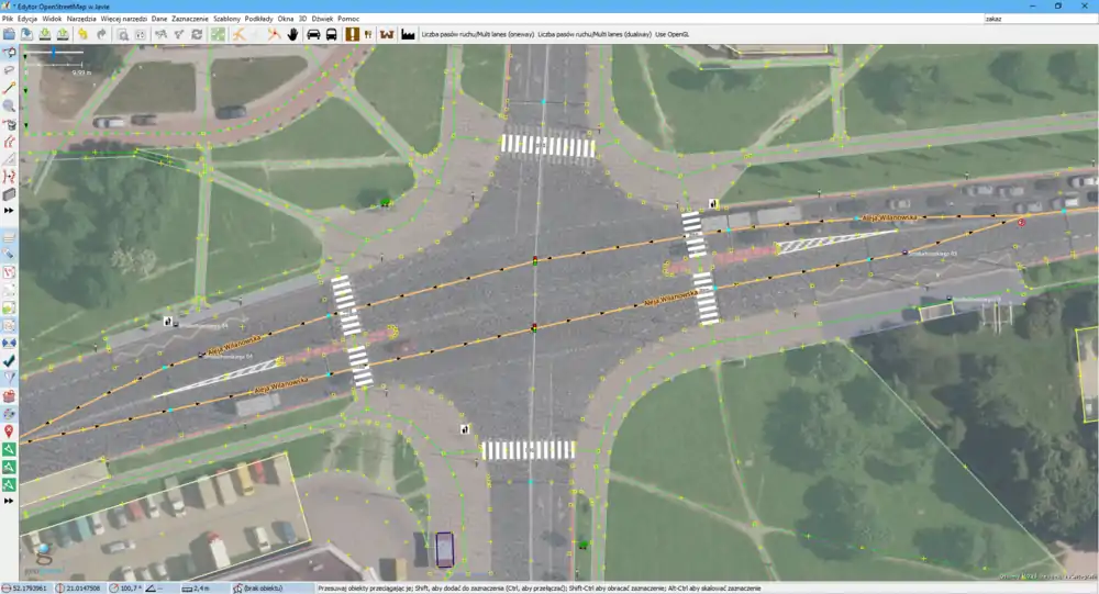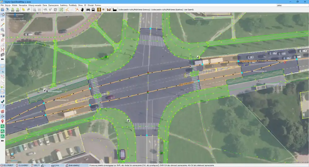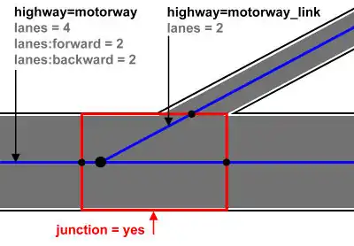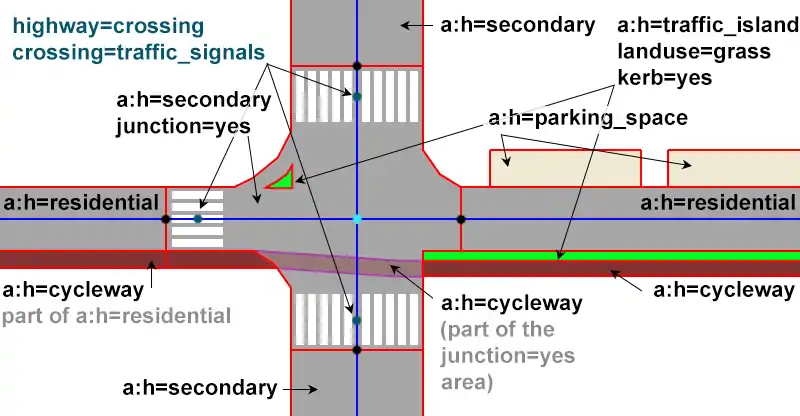 This page shows how to divide streets and their junctions in separate area:highway elements.