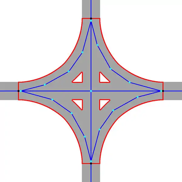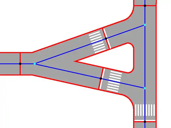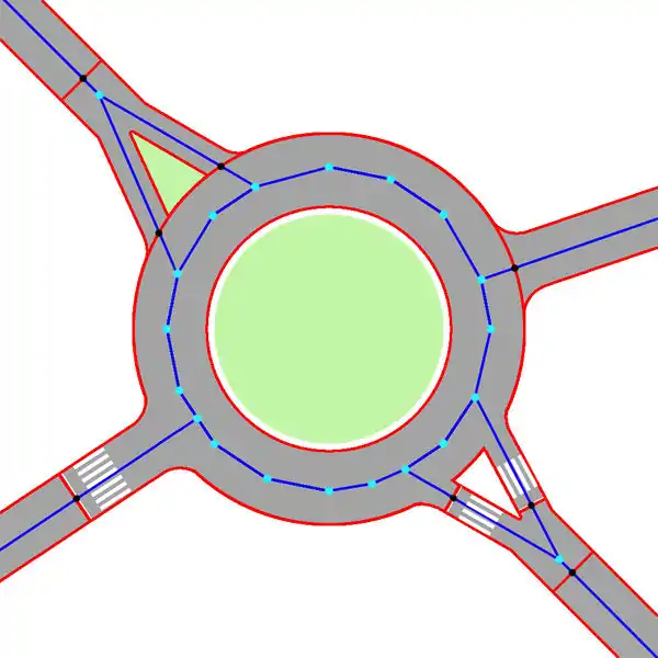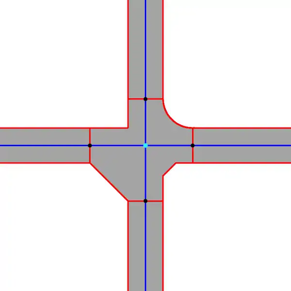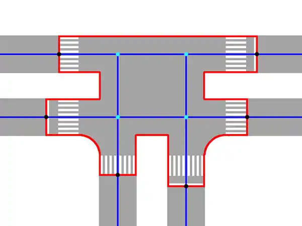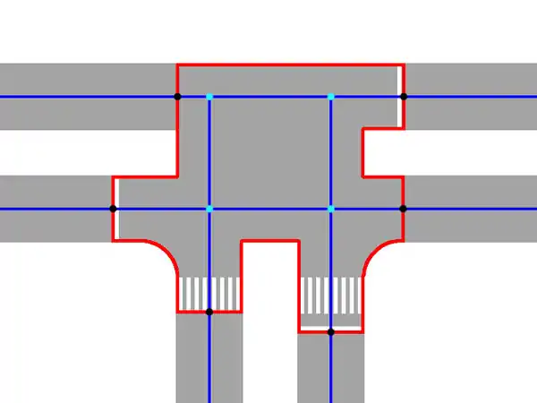 It is not necessary to draw an junction area in case of: service roads, footways, cycleways trucks and generic roads.