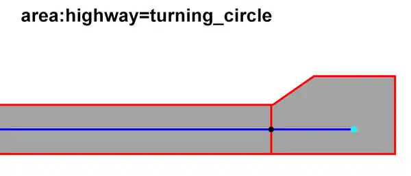 Simple turning circle. The turning area is drawn as separate area:highway=turning_circle area.