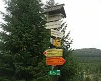 Guideposts are often found along official hiking/cycling/skiing routes to indicate the directions to different destinations. Additionally they are often named after a region or place and shows the altitude.