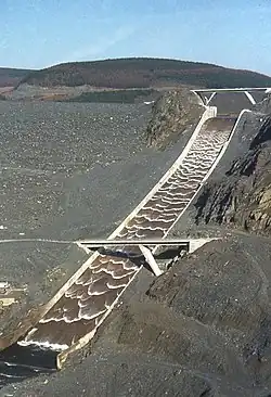 - Spillway: A construction related to dams allowing overflow water to go downstream. A spillway operates only in special conditions and shouldn't be walked by humans.