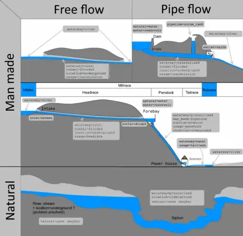 - waterway=pressurised : Create the page, dedicate this value to pipe flow waterways