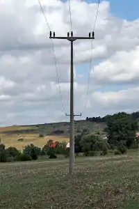 | delta | A pole with two insulators on two sides of the pole, and one insulator on the top of the pole. Unlike in delta tower, "delta" means a conductor configuration than a pole design. | |||
