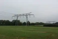 A tower is the most encountered support for power transmission lines. Often composed of a four-sided metal lattice (4 legs linked by metal beams) supporting crossarm on its top.